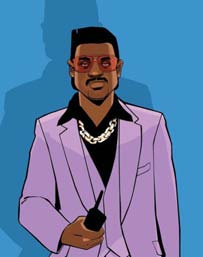 The visual world was inspired by gangster films and gaming culture described as: